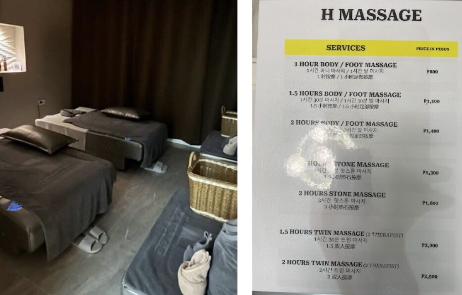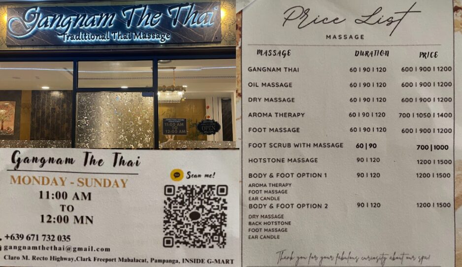 G martと同じ建物内にあります。1時間600ペソでマッサージ。クラーク内では手頃な価格。