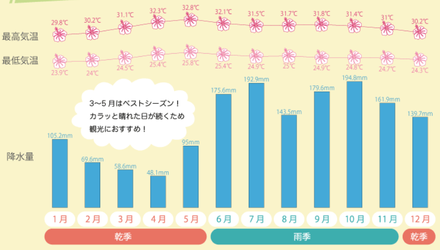 特におすすめなのが、乾季の中でも3〜5月🌸 この時期は雨が少なく、アクティビティにも最適!