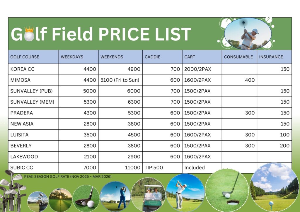 ・韓国人プロ講師:レッスン料5,000ペソ+グリーンフィー・カート代別
